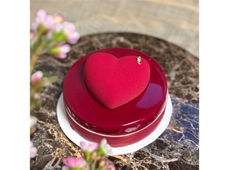 Chocolade franbozen mousse, red velvet joconde,frambozencompote ,crispy bodem met rietsuiker,framboos en witte chocolade